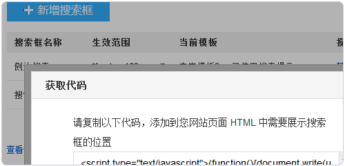 8、将代码放在你想要展示搜索框的位置,有懂CSS和JS的朋友可以自己修改样式,这样就能达到网站完善整合百度站内搜索的目的了。