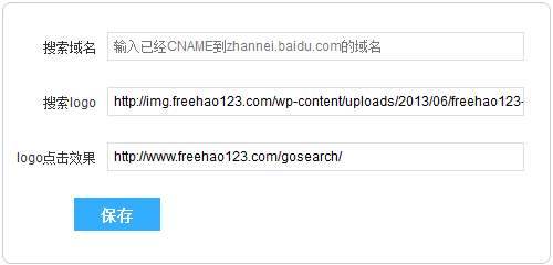 在以下位置填写已备案并正确的cname到zhannei.baidu.com的域名,建议填写新的二级域名以免影响您站点的已有服务。如您填写未经cname的域名,会导致从搜索框跳转至结果页时出错。