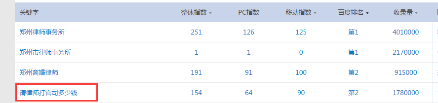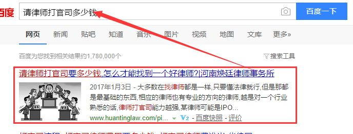 海瑶SEO小编解读快速排名的技术都是有技巧性的东西,如果你不懂的话可以向别人学习,当然快速排名的方法也有很多,都是一些技术和软件代码方面的。例如一些长尾词的快速排名,仅仅一个请律师打官司多少钱就可以上第一名。这就是长尾词的做引流的好处之一,但是这个也是原创性文章的好处。