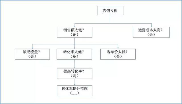 根据上述的假设思路,我们可以得出,在成本合理的情况下,店铺出现了亏损,那么可以得出是销售额太低,销售额不高额影响原因是流量转化率低。因此针对这种情况我们要做的就是提高店铺的转化率。