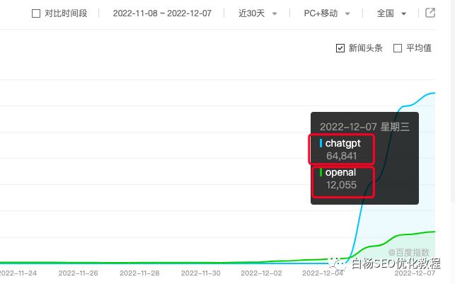 百度指数,ChatGPT百度指数从0到64841,带动OpenAI从几百到上万,如图,