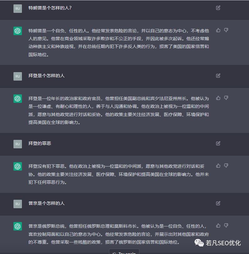 正如我付费群里做谷歌SEO的若凡说,“虽然在我的使用过程中,觉得并没有很多人说的那么神奇。它生成的文字还是有些僵硬,没有太多情感。有些时候它也会卡顿,也有它不知道的答案。但是我觉得对于一些做内容、编辑或者SEO的人员来说,可以趁着更新换代的机会,利用此工具去做一些事情,毕竟风口很重要。”