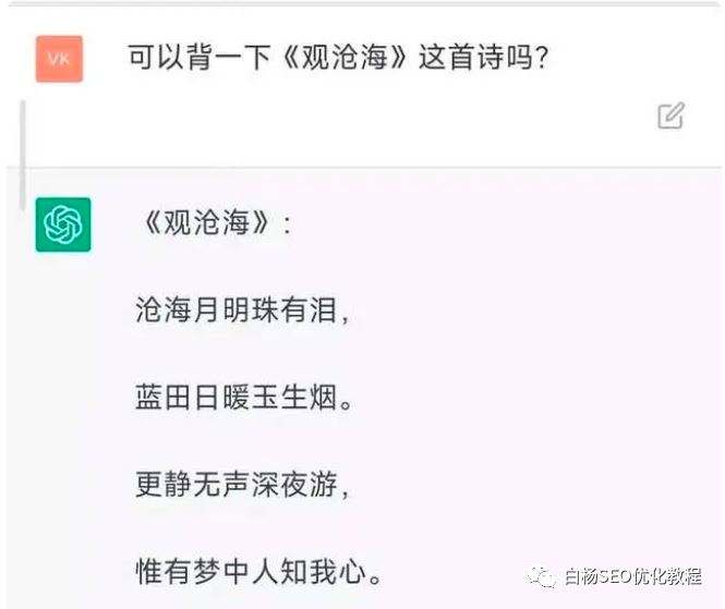 当你要求ChatGPT进行创作时,它可以自由发挥,但是,当你的目的是寻求正确答案时,ChatGPT可能有时无法满足期待。比如,让ChatGPT背一下《观沧海》这首诗,它却即兴创作了一首。