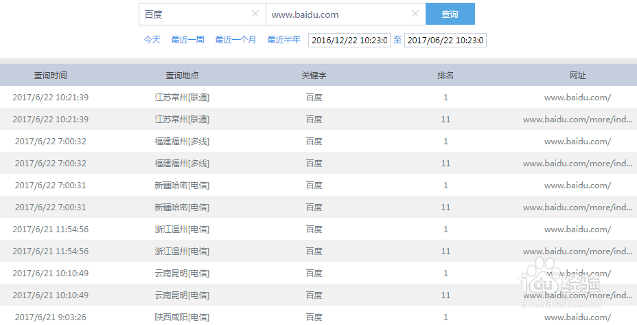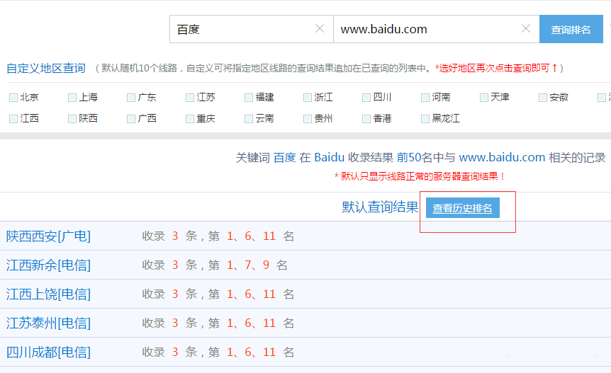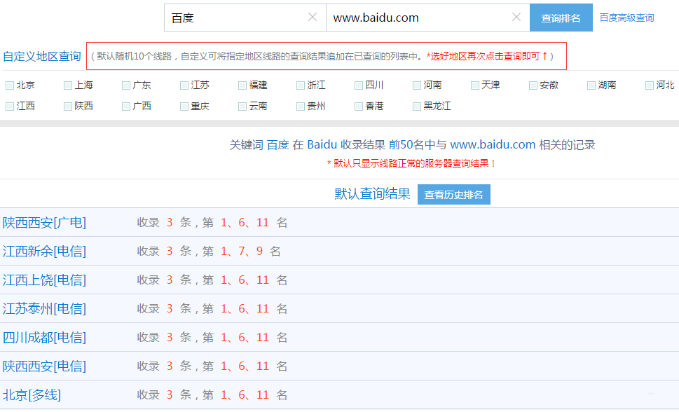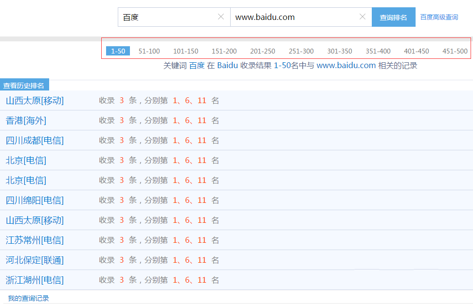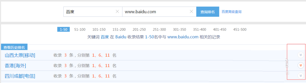 5、第一个搜索框,算是综合查询,结果是随机的地区排名。第二个搜索框,是地区排名查询,结果默认显示1到50名是否有排名,依次类推。