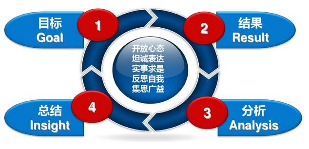 第一个步骤—回顾目标:当初的目的或期望是什么; 第二个步骤—评估结果:和原定目标相比有哪些亮点和不足; 第三个步骤—分析原因:事情成功和失败的根本原因,包括主观和客观两方面; 第四个步骤—总结规律:通过以上的分析找到事物更有效、更符合本质规律的做法,比如需要实施哪些新举措,需要继续哪些措施等。